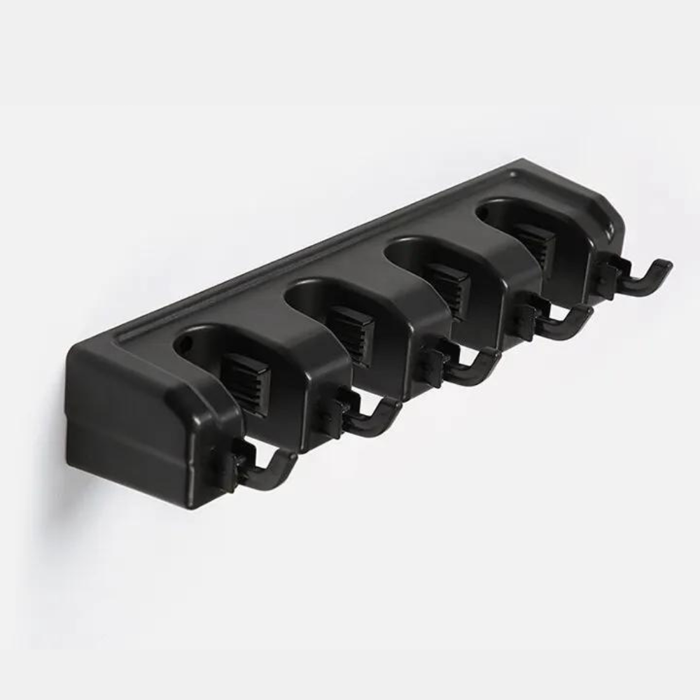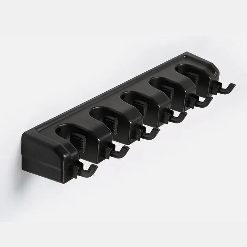 Feito de plástico resistente, este suporte é construído para durar, suportando o peso das suas ferramentas sem problemas.