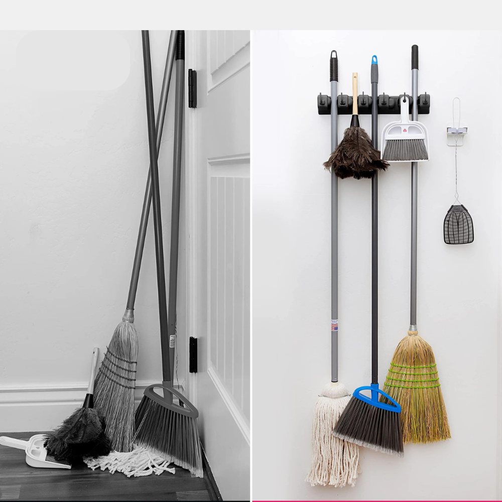 O Suporte Organizador de Parede para Esfregão e Vassoura é a solução perfeita para manter sua casa limpa e organizada.